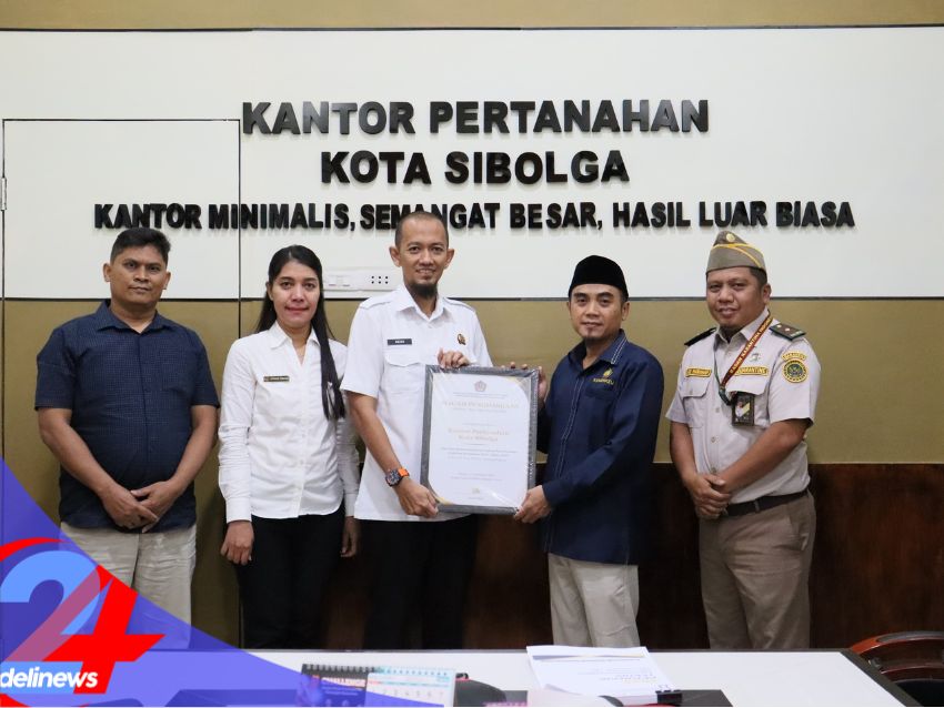 Sibolga|delinews24.net – Kantor Pertanahan (Kantah) Kota Sibolga resmi menerima piagam penghargaan dari Kantor Wilayah Direktorat Jenderal Kekayaan Negara (DJKN) Sumatera Utara atas keberhasilan dalam penyelesaian target sertipikasi Barang Milik Negara (BMN) tahun anggaran 2025. Penghargaan tersebut diserahkan langsung oleh Kepala KPKNL Padangsidimpuan, Bapak Agus Yulianto, kepada Kepala Kantor Pertanahan Kota Sibolga, Kamis (05/03/2026).