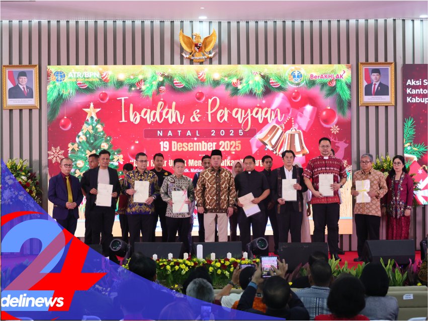 Jakarta – Dalam Perayaan Natal Kementerian Agraria dan Tata Ruang/Badan Pertanahan Nasional (ATR/BPN) Tahun 2025, Menteri ATR/Kepala BPN, Nusron Wahid, menyerahkan 14 Sertipikat untuk Rumah Ibadah dan Yayasan Kristiani kepada delapan penerima. Pendeta Maruli Sinaga dari Gereja Kristen Protestan Simalungun (GKPS) sebagai salah satu penerima menyatakan, dirinya merasakan betul dukungan dan kemudahan proses pengurusan sertipikat untuk gerejanya.