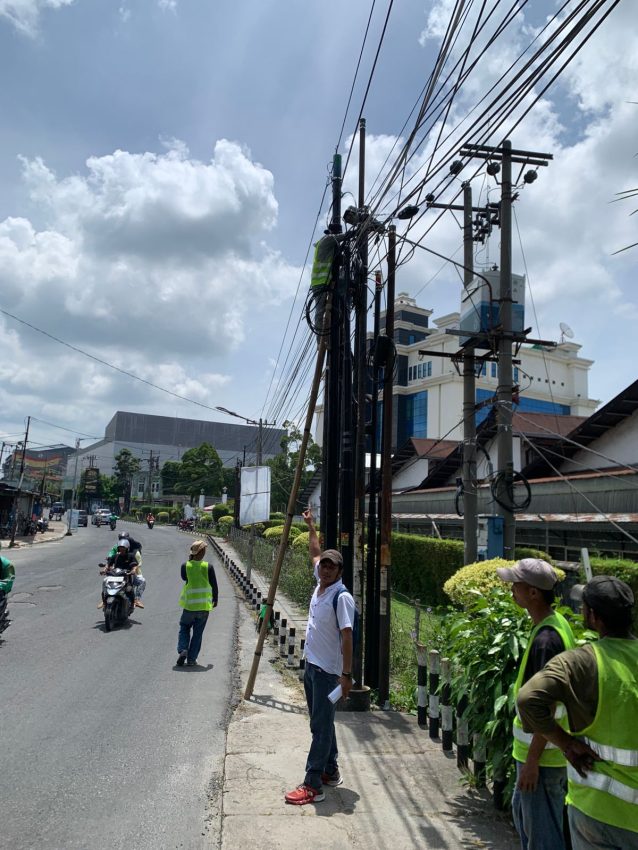 Setibanya di lokasi, Satpol PP meminta agar aktivitas pemasangan kabel serat fiber optik dihentikan sementara pada menit itu juga hingga dokumen izin pemanfaatan aset fasilitas umum dalat dilengkapi sesuai prosedur.
