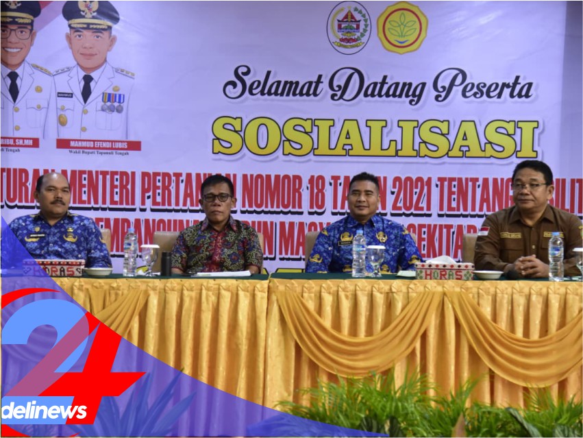 Kepala Kantor Pertanahan Kabupaten Tapanuli Tengah, Bapak Manaek Tua, SKOM, SE, MSi, hadir sebagai narasumber dalam Sosialisasi Peraturan Menteri Pertanian Nomor 18 Tahun 2021 tentang Fasilitasi Pembangunan Kebun Masyarakat Sekitar.