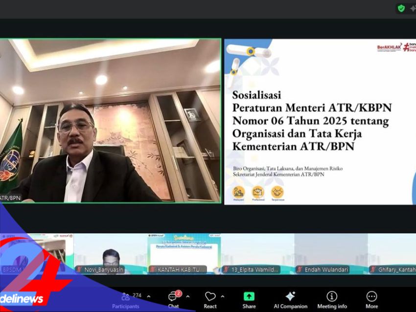 delinews24.net – Sekretaris Jenderal (Sekjen) Kementerian Agraria dan Tata Ruang/Badan Pertanahan Nasional (ATR/BPN), Dalu Agung Darmawan, memberikan pengarahan tegas kepada seluruh jajaran pusat dan daerah dalam Webinar Nasional Sosialisasi Peraturan Menteri ATR/Kepala BPN Nomor 6 Tahun 2025. Dalam kegiatan yang berlangsung pada Kamis (12/03/2026) tersebut, ia menekankan empat poin krusial untuk memperkuat efektivitas organisasi.