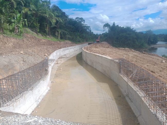 Ia juga mengatakan saluran ini telah terhubung dengan saluran yang lama, namun lantainya masih yang harus dicor lagi, begitu juga dek penahan ini, akan dicor lagi.Setelah selesai dicor, sudah bisa dialiri dan tinggal kita fokus untuk cor pasak bumi, untuk penahan saluran ini,” katanya.